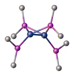 A transition metal phosphido complex is a coordination complex containing a phosphido ligand (R2P, where R = H, organic substituent). With two lone pairs on phosphorus, the phosphido anion (R2P−) is comparable to an amido anion (R2N−), except that the M-P distances are longer and the phosphorus atom is more sterically accessible. For these reasons, phosphido is often a bridging ligand.[1] The -PH2 ion or ligand is also called phosphanide or phosphido ligand.
