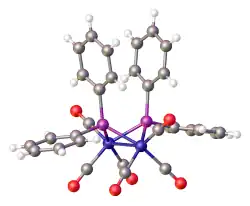- ↑ Ballinas-López, María Gabriela; Padilla-Martínez, Itzia I.; Martínez-Martínez, Francisco J.; Höpfl, Herbert; García-Báez, Efrén V. (2005). "Di-μ-diphenylphosphido-bis[tricarbonyliron(II)] dichloromethane solvate". Acta Crystallographica Section E. 61 (8): m1475 – m1477. doi:10.1107/S1600536805020982.