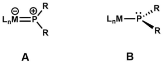 - ↑ Rosenberg, Lisa (2012). "Metal Complexes of Planar PR2 Ligands: Examining the Carbene Analogy". Coord. Chem. Rev. 256 (5–8): 606–626. doi:10.1016/j.ccr.2011.12.014.