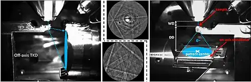 - ↑ Yuan, H.; Brodu, E.; Chen, C.; Bouzy, E.; Fundenberger, J-J.; Toth, L.S. (2017). "On-axis versus off-axis Transmission Kikuchi Diffraction technique: application to the characterisation of severe plastic deformation-induced ultrafine-grained microstructures". Journal of Microscopy. 267 (1): 70–80. doi:10.1111/jmi.12548. PMID 28328010. S2CID 7988685.