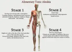 The response in the body to the mycotoxin, alimentary toxic aleukia, occurs several days after consumption, in four stages: