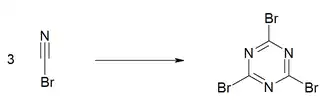Cyanogen chloride and cyanogen bromide each trimerize at elevated temperatures over a carbon catalyst.[1] The chloride gives cyanuric chloride: