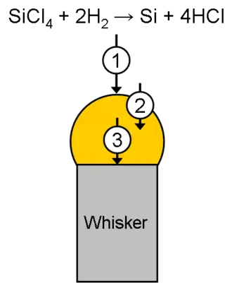 - ↑ Wagner, R. S.; Ellis, W. C. (1964). "Vapor-liquid-solid mechanism of single crystal growth". Appl. Phys. Lett. 4 (5): 89. doi:10.1063/1.1753975.