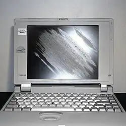 Vinegar syndrome, also known as acetic acid syndrome,[1] is a condition created by the deacetylation of cellulose acetates (usually cellulose diacetate) and cellulose triacetate.[2] This deacetylation produces acetic acid, giving off a vinegar odor that gives the condition its name; as well, objects undergoing vinegar syndrome often shrink, become brittle, and form crystals on their surface due to the migration of plasticizers.[3] Vinegar syndrome widely affects cellulose acetate film as used in photography.[4] It has also been observed to affect older magnetic tape, where cellulose acetate is used as a base, as well as polarizers used in liquid-crystal display units and everyday plastics such as containers and tableware.[5][6][7][8] High temperatures and fluctuations in relative humidity have been observed to accelerate the process.[3] The process is autocatalytic, and the damage done by vinegar syndrome is irreversible.[3][4]