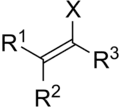 In organic chemistry, a vinyl halide is a compound with the formula CH2=CHX (X = halide). The term vinyl is often used to describe any alkenyl group. For this reason, alkenyl halides with the formula RCH=CHX are sometimes called vinyl halides. From the perspective of applications, the dominant member of this class of compounds is vinyl chloride, which is produced on the scale of millions of tons per year as a precursor to polyvinyl chloride.[1] Polyvinyl fluoride is another commercial product. Related compounds include vinylidene chloride and vinylidene fluoride.