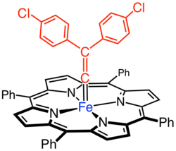 - ↑ Mansuy, Daniel; Battioni, Jean Paul; Lavallee, David K.; Fischer, Jean; Weiss, Raymond (1988). "Nature of the complexes derived from the reaction of 1,1-bis(p-chlorophenyl)-2,2,2-trichloroethane (DDT) with iron porphyrins: Crystal and molecular structure of the vinylidene carbene complex Fe(TPP)(C:C(p-ClC6H4)2)". Inorganic Chemistry. 27 (6): 1052–1056. doi:10.1021/ic00279a023.