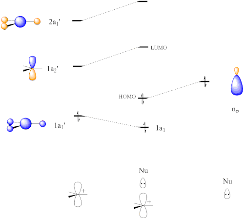 ![]() Orbital interaction diagram for nucleophilic addition to CH3+ |