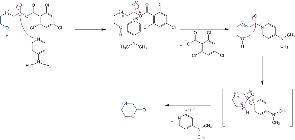 - ↑ Inanaga, J.; Hirata, K.; Saeki, H.; Katsuki, T.; Yamaguchi, M. "A Rapid Esterification by Means of Mixed Anhydride and Its Application to Large-ring Lactonization". Bull. Chem. Soc. Jpn. 1979, 52, 1989–1993. doi:10.1246/bcsj.52.1989
