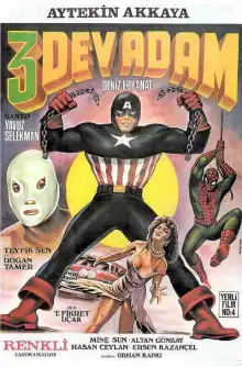 3 Dev Adam (Üç Dev Adam; translated as 3 Giant Men and sometimes referred to as Captain America And Santo Vs. Spider-Man) is a 1973 Turkish superhero film directed by T. Fikret Uçak and written by Doğan Tamer, based on characters created by Steve Ditko, Jack Kirby, Stan Lee, Joe Simon and Rodolfo Guzmán Huerta, featuring Aytekin Akkaya as Captain America and Yavuz Selekman as El Santo. Captain America and El Santo are called to Istanbul on a special mission to stop the villainous Spider-Man and the rest of his vicious heinous criminal gang.