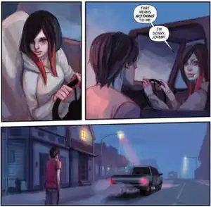 When he completed the script and thumbnails, Druckmann sent them to Wong, who interpreted the writing into her own style by sketching rough pages, ensuring the compositions worked well.[6]: 85 She refined the pages, conveying the subtlety in the emotions of the characters; Druckmann and Wong wanted to avoid melodramatic scenes in both writing and art.[6]: 86 Wong added color to the pages. Druckmann expressed the importance of using colors to separate the different time periods of the story, and to mirror Johnny's emotional journey.[6]: 87 The final step for Wong was painting, which involved defining details; Druckmann said painting the artwork "[transforms] the rigid feel of the earlier versions to the unrestrained painterly look ... in the final pages".[6]: 88