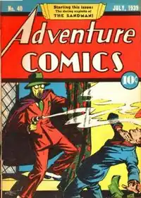 ![]() Adventure Comics #40 depicting the first superhero cover of the series featuring Sandman (Wesley Dodds) in the cover. Art by Creig Flessel. | |