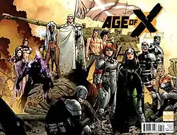"Age of X" is a comic book storyline published by Marvel Comics as part of its X-Men series. The storyline is set in an alternate reality known as Earth-11326. Running from January to April 2011, it is similar in name and tone to the 1995 "Age of Apocalypse" storyline.