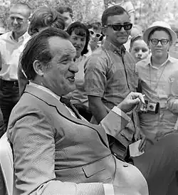 Although he was often considered a difficult person,[41] some acquaintances of Capp have stressed that the cartoonist also had a sensitive side. In 1973, upon learning that 12-year-old Ted Kennedy Jr., the son of his political rival Ted Kennedy Sr., had his right leg amputated, Capp wrote the boy an encouraging letter that gave candid advice about dealing with the loss of a limb,[42] which Capp himself had experienced as a boy. One of Capp's grandchildren recalls that at one point, tears were streaming down the cartoonist's cheeks while he was watching a documentary about the Jonestown massacre.[43] Capp gave money anonymously to charities and "people in need" at various points in his life.[41]