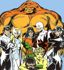 According to Byrne, Guardian and Snowbird were "fan characters", created before he became professionally involved in comics, and he created all the remaining members while working on X-Men #120, specifically designing them to be balanced with the X-Men in power.[5]