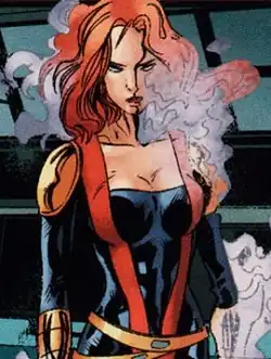 She would stay hidden for the next few years, but when human-mutant relationships deteriorated, she was recruited by Fabian Cortez and became a member of the second lineup of the Acolytes, followers of Magneto, whom she had met with Xavier years before. As one of the older and more experienced mutants, she was given a position of seniority within the group, even though she didn't agree with some of the Acolytes' more extreme policies, like the killing of humans, though initially she advocated it in the case of Moira MacTaggert.[1] Over the years she would support the Acolytes and Magneto, but she would also try to limit casualties and gave limited aid to the X-Men and other superheroes like Quicksilver who opposed them.[3]