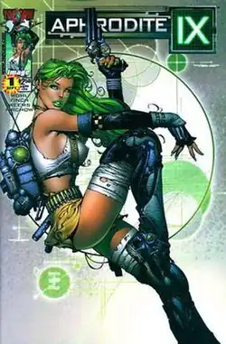 Aphrodite IX is a superheroine created in 2000 by writer David Wohl and artist David Finch, published by the American comics studio Top Cow, an imprint of Image Comics. Aphrodite IX is a self-aware female android designed as a spy and assassin who retains no memory of her missions. A sequel series was launched in 2013, and the character was rebooted in the 2018 Cyber Force: Awakening series.
