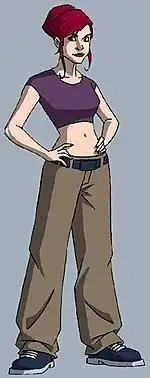While depicted as a red-haired adult woman in the comic series and the 1987 and 2003 animated series, she is depicted as being a teenager in the 2012 and 2018 animated series, and also bi-racial in the latter series, its 2022 film, and the 2023 film Mutant Mayhem. Her love interests have varied, though she is typically paired with the vigilante Casey Jones.