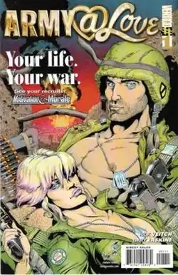 Army@Love is an American comic book series from DC Comics' Vertigo imprint, which started in May 2007. It is drawn and scripted by Rick Veitch, with Gary Erskine on inking duties.[1] Issue #12 published in February 2008 was the "season finale". A second series of 6 issues, titled Army@Love: The Art of War began monthly publication in August 2008.