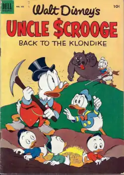 "Back to the Klondike" is a Disney comic book story created by Carl Barks, created in September 1952[1] and first published in March 1953[2] in Four Color #456. Scrooge McDuck returns to Klondike where he has made his fortune, bringing Donald and the three nephews along, to find back the gold he has left there.