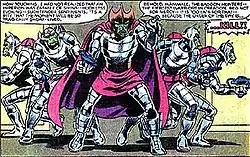![]() A group of Badoon Hunters led by their leader Brother Royal. Interior artwork from X-Men Annual 5 (1981) Art by Brent Anderson. | |