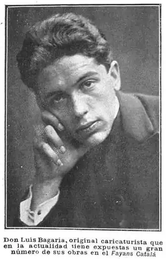 Lluís Bagaria i Bou (1882 in Barcelona – 1940 in Havana) one of the most important Spanish caricaturists in the first half of the 20th century. His drawings, in a synthetic and decorative style, were published in the most important journals of Spain, including L'Esquella de la Torratxa and ¡Cu-Cut! [1] between 1906 and 1940.