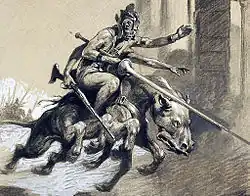 The Green Men are primitive, intellectually unadvanced, do not have any kind of art and are without a written language. While they manufacture edged weapons, any advanced technology they possess, such as 'radium pistols', is stolen from raids upon the Red Martians. They inhabit the ancient ruined cities left behind by civilizations which lived on Barsoom during a more advanced and hospitable era in the planet's history.[12] They apparently arose from a biological experiment which went awry and as with all other Martians, they are an egg-laying species, concealing their eggs in incubators until hatching. Tars Tarkas, who befriends John Carter when he first arrives on Barsoom, is an unusual exception from the typical ruthless Green Martian, due to having known the love of his own mate and daughter.[4]: 96 [17]: 2