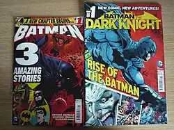 Volume two ended after 57 issues in June 2012 and was retitled to simply 'Batman' for volume three. Now edited by Andrew James, the first issue of the new format was released on 5 July, the same day as the first issue of Titan's new secondary Batman title, Batman: The Dark Knight. The title began printing the New 52 Batman and Robin series whilst also continuing to reprint ongoing pre-New 52 storylines. It later showcased strips from Nightwing and Batman Eternal, as well as other Batman-related spin-off series. Some longer US issues such as annuals and those with 'back-up' strips were published across several issues by Titan due to page count restrictions. Titan celebrated fifty issues of Volume 3 in April 2016.[5]