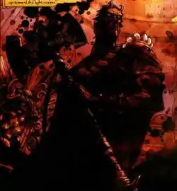 During Illyana's seduction, Belasco also attempts to transform Ka-Zar and Shanna into demons to be parents to a new demonic race. He is seemingly defeated when Ka-Zar impales Belasco on his own sword.[14] Belasco is next revealed to be the new master of the Cat People.[15]