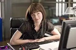 In Deadline, during her time at the Bugle, she became friends with Kat Farrell and pushed her to take on the Judge Hart case in order to get a better job at the Bugle.[21] She kept a spare key to Kat's apartment in her desk, which fellow reporter Paul Swanson used to break into Kat's apartment in an attempt to scare her off the case.[22]