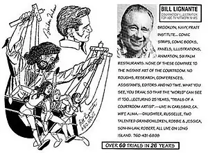Of his many illustration assignments, Lignante wrote, "None of these compare to the instant art of the courtroom. No roughs, research, conferences, assistants, editors and no time. What you see, you draw, so that the world can see it too." In the 26 years he spent as a courtroom artist for ABC Network News, he illustrated 60 trials, including those of Sirhan Sirhan, Charles Manson and Patty Hearst.[1]