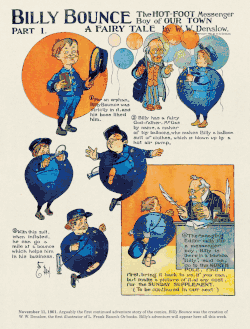 Billy Bounce was a comic strip published erratically by noted illustrator W. W. Denslow (1901–1902) and later C. W. Kahles (1902–1905) between November 10, 1901, and December 3, 1905.[1] The strip centers on the actions of the title character, a ball-shaped boy who is capable either of bouncing long distances or actual flight. It is noted as one of the earliest comic strips in which the protagonist has superpowers.[2]