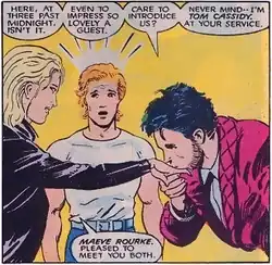 His original principal power was that he could generate blasts of heat through a wooden medium, such as the shillelagh that he often carries. He has a rivalry with Sean, mainly because Sean won both Cassidy Keep, their estate, and the family fortune from Tom in a game of dice. They were also rivals for a woman named Maeve Rourke, whom Sean married.