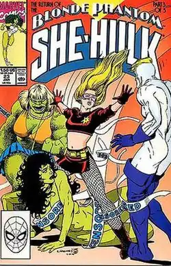 Louise's daughter, Wanda Louise Mason, introduced in The Sensational She-Hulk #21 (Nov. 1990), briefly followed her mother's crime-fighter legacy, becoming the costumed Phantom Blonde two issues later,[26] in a story by writer Steve Gerber and penciler Buzz Dixon. She was later considered a "potential recruit" for the US government's superhero-training program, the Initiative.[27]