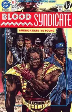 The Blood Syndicate is a fictional multicultural vigilante gang of superhumans created by Milestone Comics and published by DC Comics. The team first appeared in Blood Syndicate #1 (April 1993), and was created by Dwayne McDuffie, Ivan Velez Jr. and Denys Cowan.
