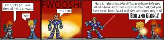 Bob and George was a sprite-based webcomic which parodied the fictional universe of Mega Man. It was written by David Anez, who was a physics instructor living in the American Midwest at the time.[2] The comic first appeared on April 1, 2000, and ran until July 28, 2007. It was updated daily, with there being only 29 days without a comic in its seven years of production and with 2568 comics being made altogether.