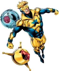 ![]() Booster Gold, as he appeared on the promotional art of Booster Gold comic book series. Art by Dan Jurgens. | |