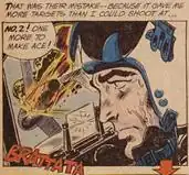 The work is among those known for "bursting shapes and colors" in its graphical content and excellent sound and action in its narrative content.[13] It is one of several Lichtenstein works that depicts what one author describes as a "male violence fantasy".[14]