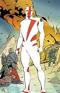 Tim Zanetti is a US Army Major who works for "Project Otherside", a secret Arctic nuclear reactor that can access other dimensions. After an accident imbues him with interdimensional energy, he is rendered comatose for 20 years and given a containment suit.