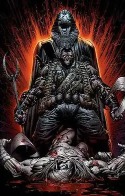 Bushman is supernaturally resurrected by the criminal overlord The Hood using Dormammu's powers. He recruits Ghost Rider foe Scarecrow, to break into Ravencroft. They lobotomize the patients to create an army.[8] Moon Knight is able to stop the army and tracks down Bushman. Khonshu demands that Moon Knight sacrifice Bushman for him, but Moon Knight refuses to kill him again. Bushman is last seen in a straight jacket in a mental asylum.[9]