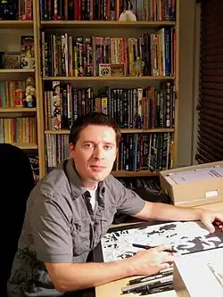Slayton lives in Texas.[2] His most prominent work was on the indie comic book Shades of Blue published first by AMP Comics and then by Digital Webbing.[3] His work has also been seen in books such as Texas Zombie Wars, (Super) Hero Happy Hour, Dead@17 Rough Cut, Digital Webbing Presents and Champion of Children.[4]