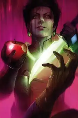 After being injured by Apex, Nico sacrifices herself by staying behind to get the other survivors to safety.[10] The remaining teenage heroes catch up to Reptil and Hazmat and are invited to have shark steaks with them. Cullen Bloodstone confronts Reptil about their ignorance to the ongoing war, which Cammi agrees with before leaving to find Nico or avenge her. Everyone agrees to go back out into Murderworld.[11] After Nara's death, Nico finally snaps and tries to kill everyone.[12] When Chase refuses to let Cammi stop Nico, she breaks his arm and leg, taking the Darkhawk amulet to stop Nico from killing everyone.[13] Cammi returns the amulet to Chase when Apex unleashes bugs, a sentient typhoon, and weaponized sand to attack the remaining teens on Murderworld.[14] Soon after, Deathlocket stops the fight by killing Apex, and everyone is able to escape Murderworld and disperse.[15]