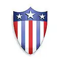![]() The circular design of Captain America's shield: a white five-pointed star on a blue circle surrounded by three concentric rings of red, white, and red. | |