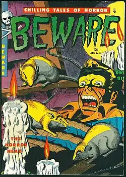 - Beware (3 issues, 1952) — continues numbering of Fantastic, then acquired by Trojan Magazines