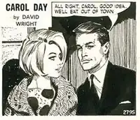 ![]() A c. 1965 Carol Day daily comic strip panel by David Wright (strip #2795), © Patrick Wright. Carol and a beau are shown. | |