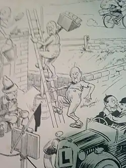 Charles Crombie specialised in cartoons and publication illustrations. His collection of humorous postcard cartoons "The Rules of Golf" was published by Perrier in 1906, and rapidly became a best-selling series. Other similar sporting themes (including "The Rules of Cricket") followed with equal commercial success.[3]