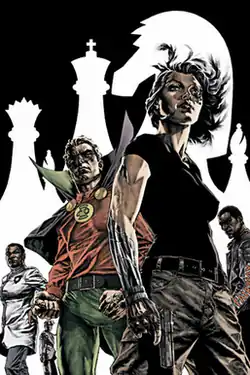 • In Selection (#5), Black Queen Sasha Bordeaux tests Checkmate agents to select her new Knight (the previous one having died in the first arc). The outgoing White King taps his Bishop, Mister Terrific, as his successor.