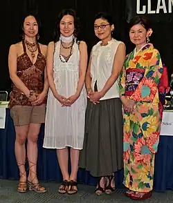 ![]() Clamp at Anime Expo 2006. From left to right: Satsuki Igarashi, Nanase Ohkawa, Tsubaki Nekoi, and Mokona. | |