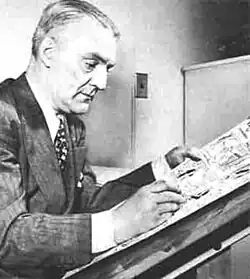During World War II, Russell and Otto Soglow drew their characters at kids' bond rallies in Albany, New York and elsewhere. Under the auspices of the American Theatre Wing, Russell and Soglow also did their chalk talks in veteran's hospitals during World War II and in the post-war years.[3][4]