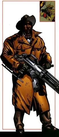 Dontrell Hamilton has no superpowers, but is a skilled marksman who uses advanced pieces of artillery. His first weapon was a six-barreled shotgun built by himself named "Josh".
