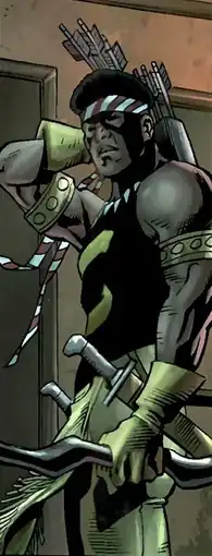 Born as Darius Jones, Comanche was a young street thug growing up in Harlem where he became a skilled archer and marksman.[1] Comanche was recruited into a gang called the Rivals, which also consisted of Carl Lucas, Willis Stryker, and Shades. As a member of the Rivals, Shades engaged in a fight with a rival gang called the Diablos and many other gangs while also committing petty crimes and working for crime lord Sonny Caputo. Shades and Comanche were later arrested by the police and sentenced to Seagate Prison, where they were tortured by the ruthless prison guard Albert "Billy Bob" Rackham.[2]